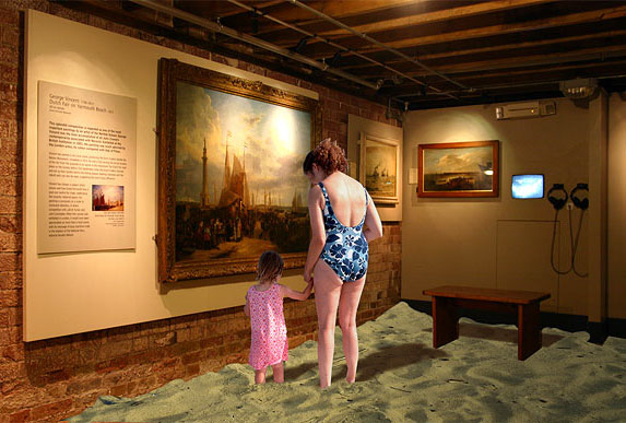 ![]() GREAT YARMOUTH – Met 92 zeemijlen is de afstand tussen Scheveningen en Great Yarmouth de kortste afstand tussen twee havens in Nederland en Engeland. Norfolkline onderhield tussen 1959 en 2006 een verbinding met vrachtschepen, maar week in 2006 uit naar Vlaardingen, omdat de Scheveningse haven te klein was voor haar uitbreidingsplannen. Tijdens hun verblijf als artists-in-residence in Scheveningen gingen Sjaak Langenberg en Rosé Beer op zoek naar overzeese verbindingen tussen Scheveningen en Great Yarmouth en ontwikkelden plannen waarmee ze nieuwe connecties tot stand brachten. Voor het Time and Tide Museum in Yarmouth ontwikkelden ze een plan om roodverbrande badgasten het museum in te krijgen. Door verhitte mensen letterlijk van het strand af te plukken en in badkleding te fotograferen tussen de historische stukken over de working class van Yarmouth, wordt de relatie tussen zee en achterland hersteld. De foto's zijn het uitgangspunt van een museumcampagne. Een ander plan behelst een roadmovie aan zee. Door een auto met de lichten aan op een draaiplateau op een havenhoofd te parkeren, wordt het voertuig een baken als een vuurtoren. Wie in auto stapt wordt deelgenoot van de roadmovie. Het relaas over de historische en actuele connecties tussen Yarmouth en Scheveningen wordt door de "chauffeur" verteld. Het plan 'Mammoeten steken de Noordzee over per ferry' hebben Langenberg & De Beer verder ontwikkeld na hun residency. Meer informatie over het onderzoek en de plannen: De zee is de grootste publieke ruimte ter wereld. Tegelijkertijd blijft het een ongearticuleerde ruimte. De artist-in-residence Badgast daagt kunstenaars, ontwerpers en wetenschappers uit om een rol te spelen in de herontwikkeling van de Nederlandse kunst en het herdefiniëren van onze relatie met de zee. LinksProject website Satellietgroep Great Yarmouth Mercury: Yarmouth's debt to the unsung Dutch © Sjaak Langenberg & Rosé de Beer |